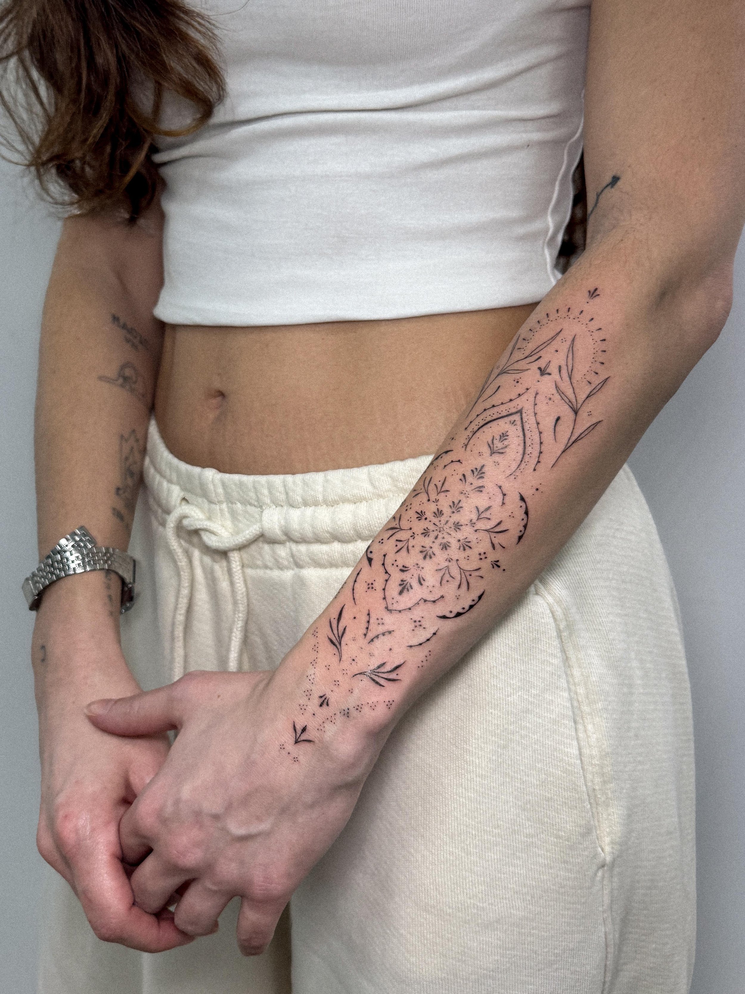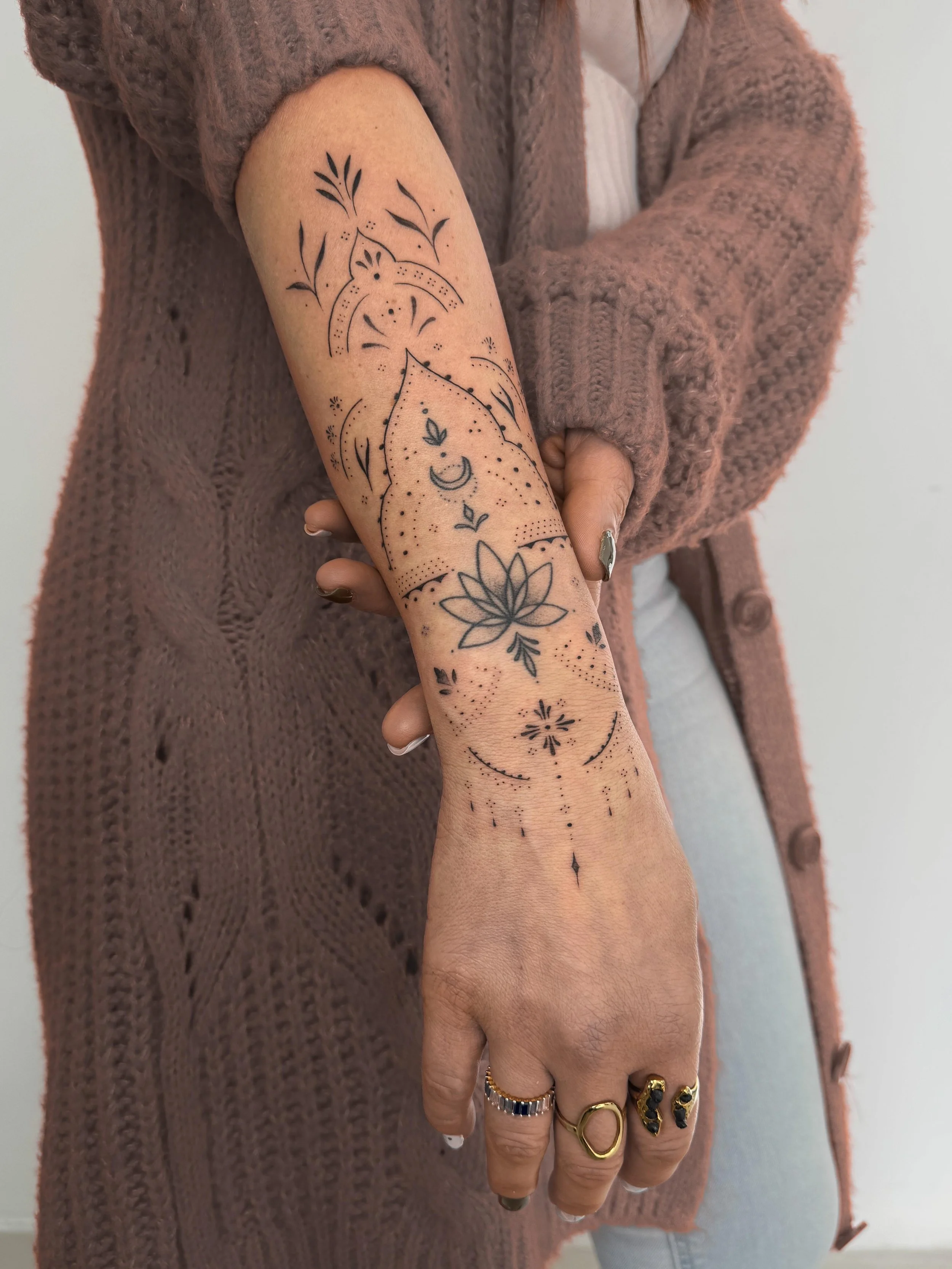 I’m a tattoo artist from the south of Spain, working mainly in ornamental, floral and fine line styles. I love creating delicate compositions with subtle details and an elegant touch, always aiming for tattoos that feel personal, beautiful and truly connected to the wearer.