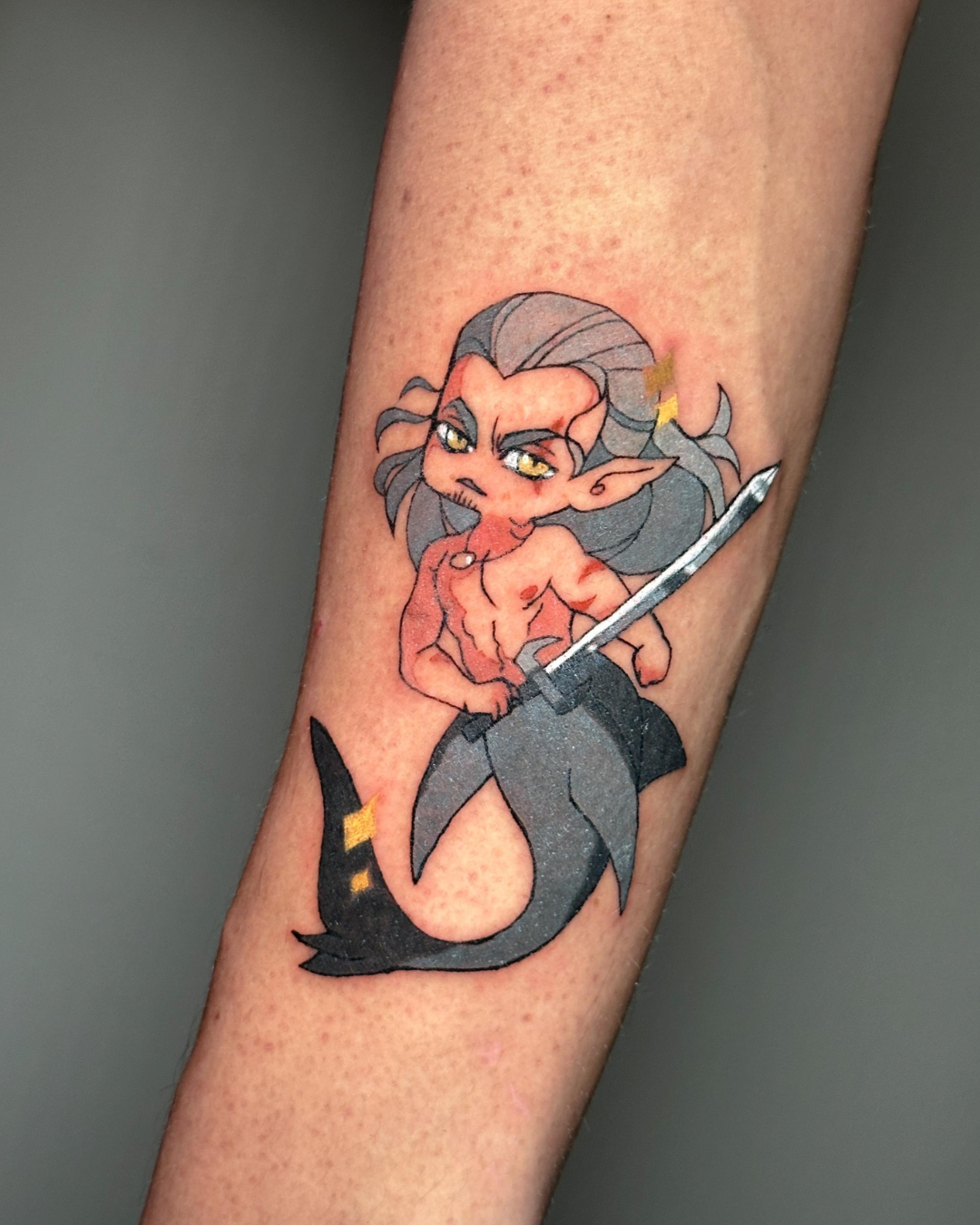 I’m a professional illustrator with over 7 years of experience working in the literary industry, and a tattoo artist specialized in full color designs! I have a strong passion for fantasy, mythology, and creatures; particularly mermaids! My art is often colorful, dreamy, end emotive, and I strive to portray the same on my tattoo designs. I take inspiration from anime, and from other independent artists I’ve been following since I was a teen with a new internet connection. Aside from drawing day in and day out,